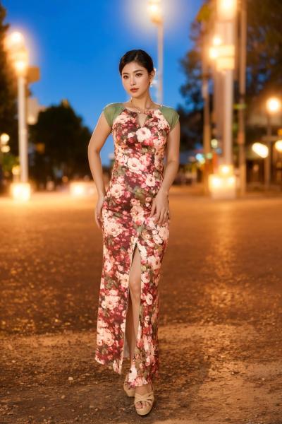 ÁO DÀI HỌA TIẾT HOA VĂN - Size M