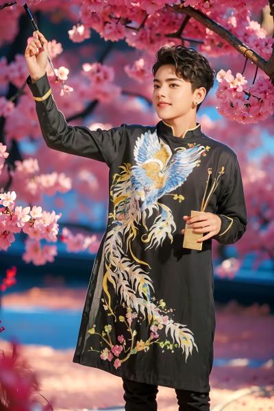 ÁO DÀI LỤA IN HÌNH BÓI CÁ - Size S