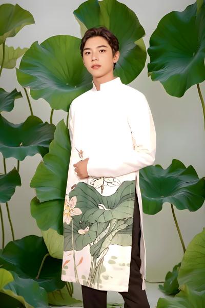ÁO DÀI CHIFFON VẼ MẪU ĐƠN - Size M