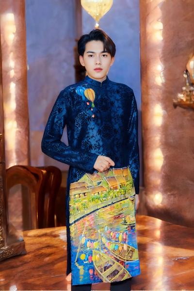 ÁO DÀI NHUNG HÌNH THÁP CHÀM - Size S