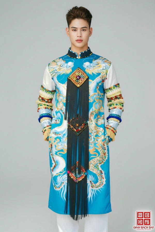 ÁO DÀI NAM HỌA TIẾT HOA - Size M