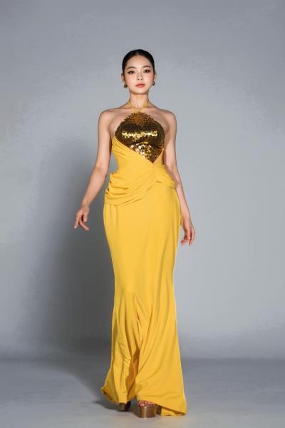 VÁY DẠ HỘI CỔ YẾM VÀNG