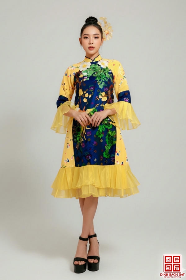 ÁO DÀI CẶP ĐÔI HOA SEN VÀNG - Size M