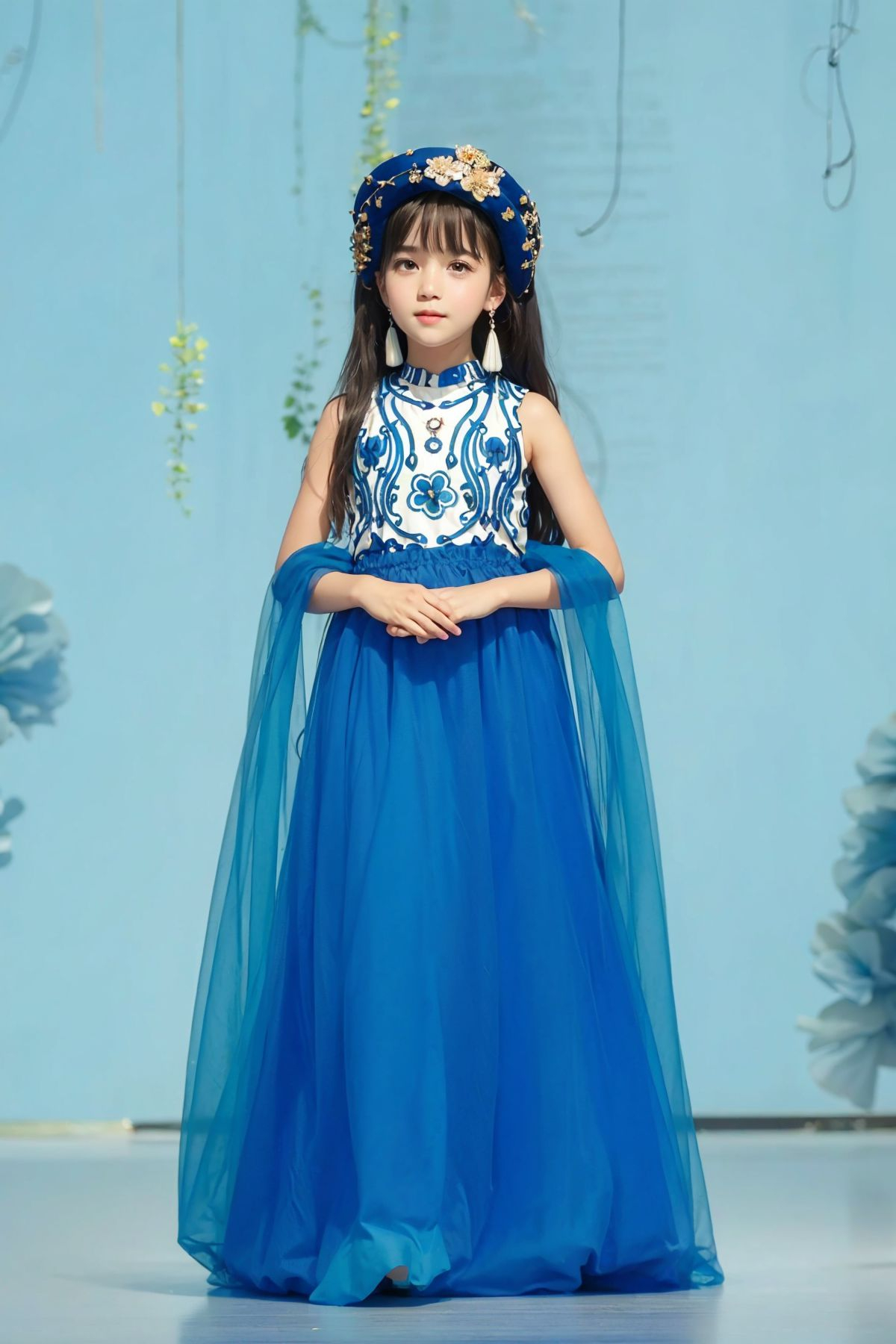 ÁO DÀI LỤA IN HÌNH HOA - Size M