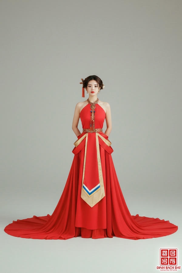 ÁO DÀI HÌNH THÁP TAY NƠ - Size XS