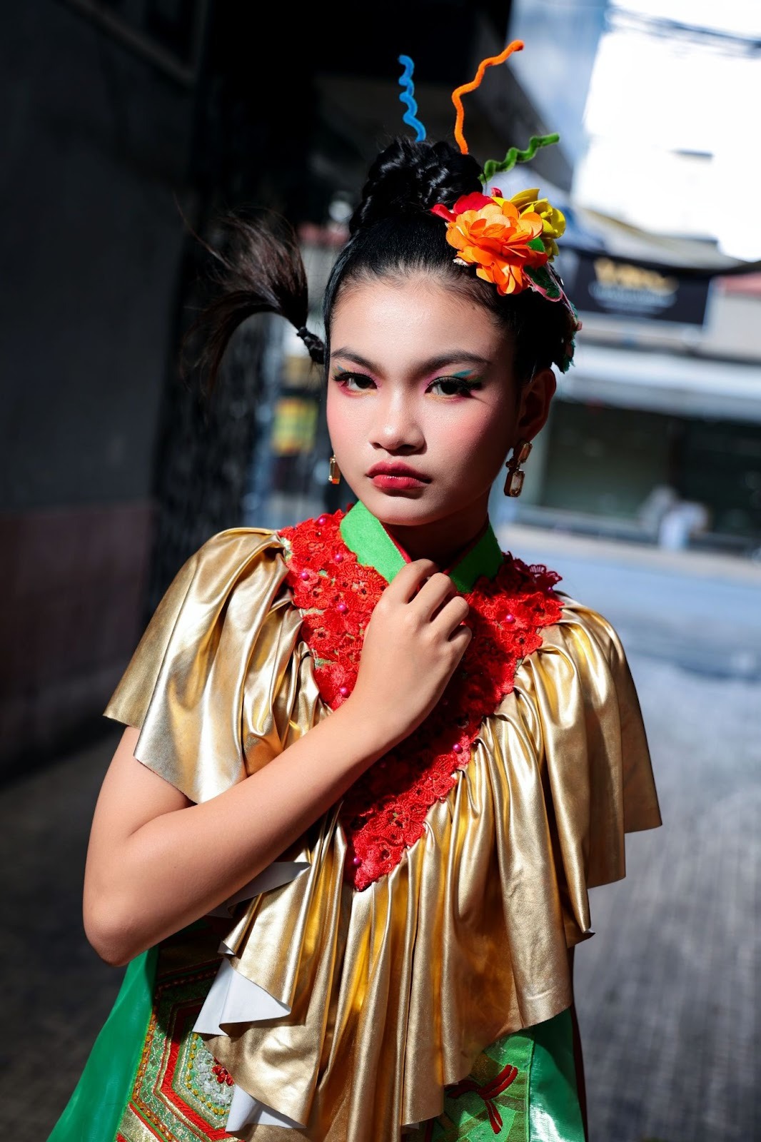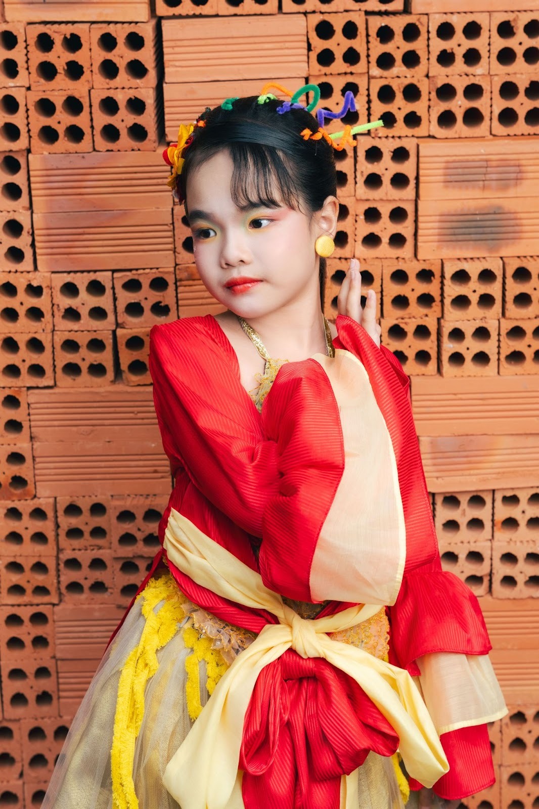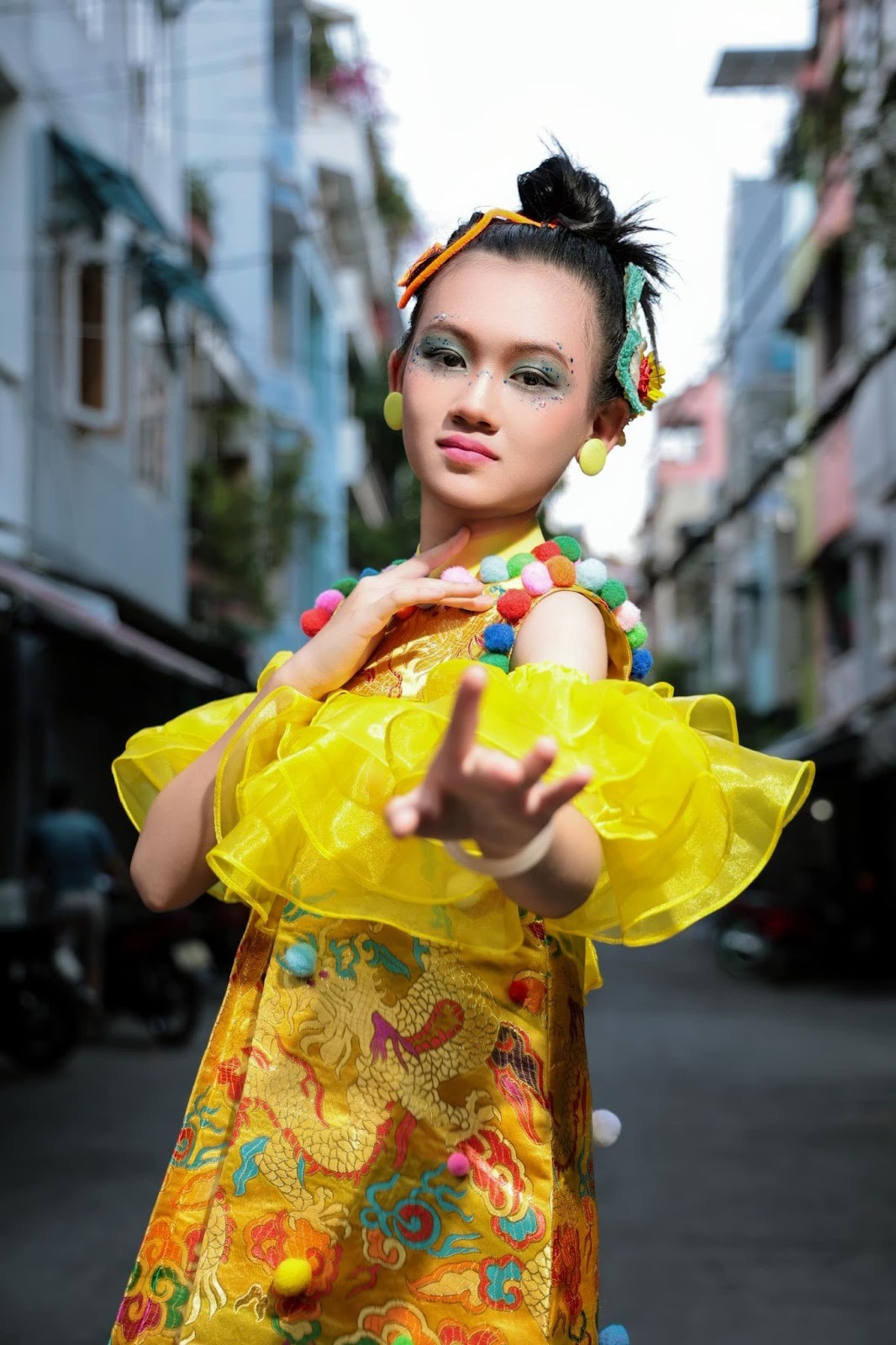 Đúng như cái tên của mình, Model Cát Tiên hiện diện như một "nàng tiên" nhỏ trong bản tình ca di sản. Cô bé sở hữu vẻ đẹp thanh tú, nhẹ nhàng với đôi mắt biết nói. Trong các thiết kế gấm vương giả, Cát Tiên mang đến sự uyển chuyển và mềm mại, gợi nhắc đến hình ảnh những mỹ nhân trong các câu chuyện dân gian xưa nhưng vẫn mang hơi thở hiện đại qua cách tạo dáng tự tin.