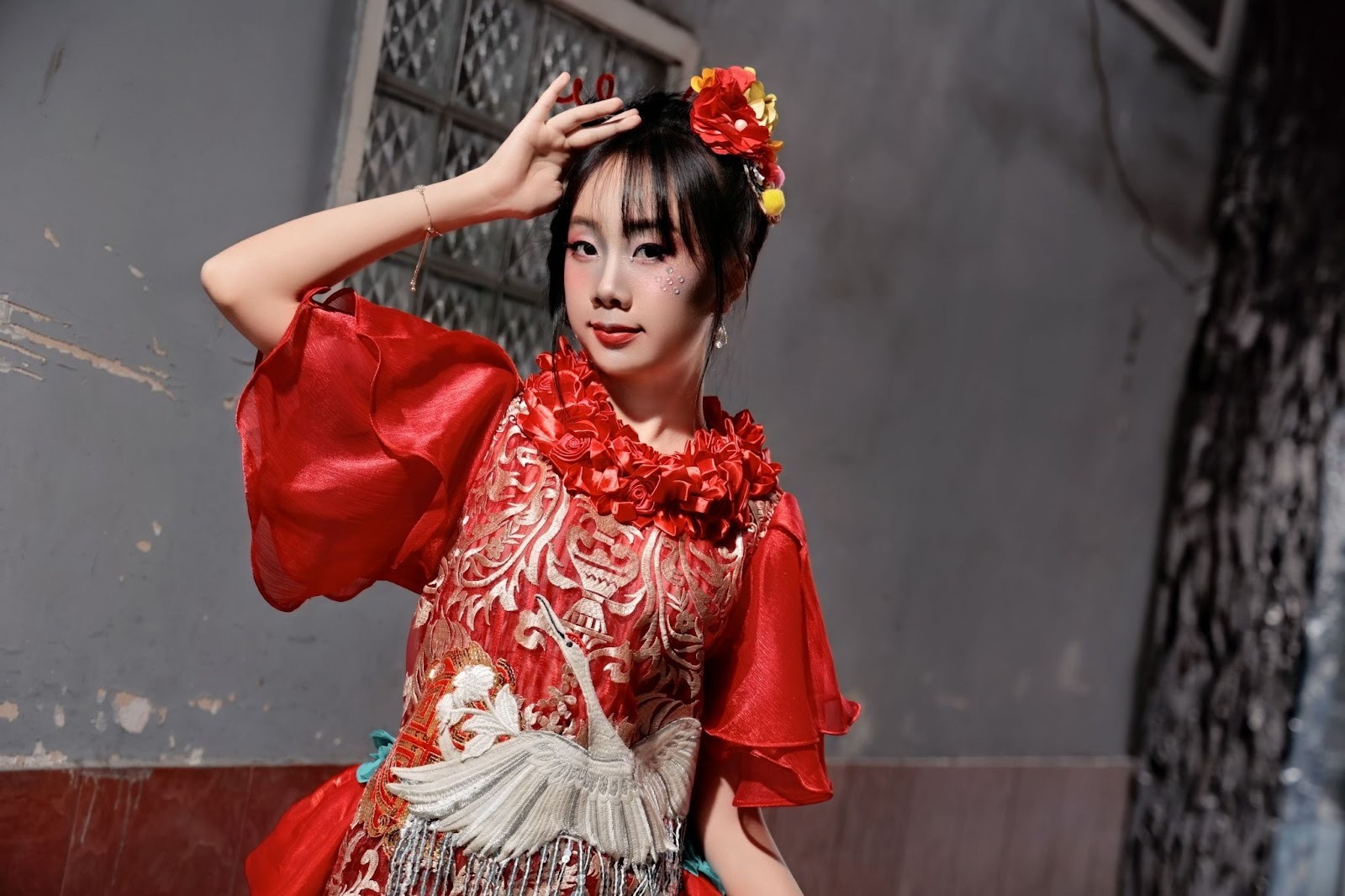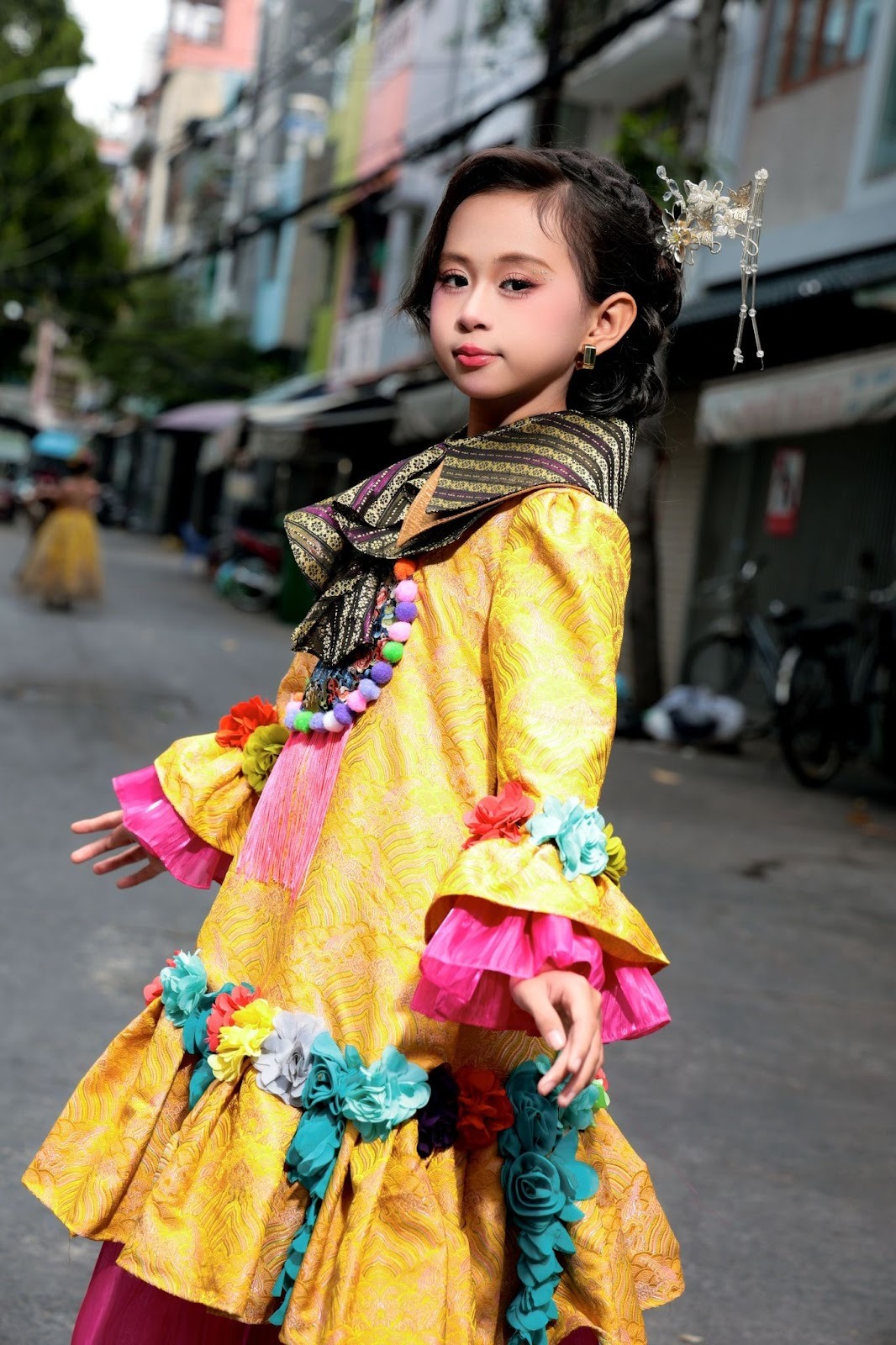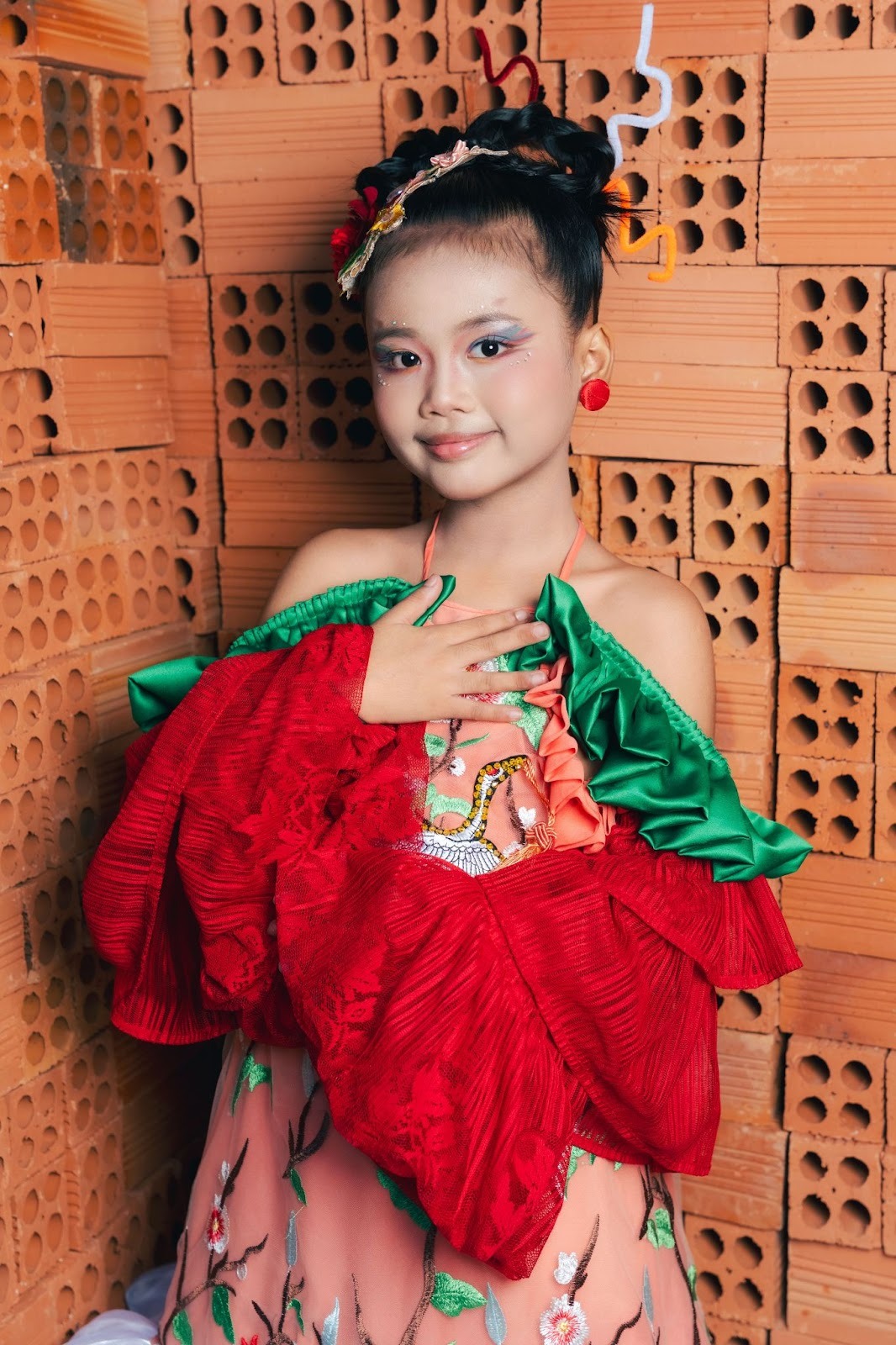 Mang tên một loài hoa quý, Model Đỗ Quyên mang đến dự án một vẻ đẹp đài các và cổ điển. Cô bé đặc biệt phù hợp với các thiết kế lấy cảm hứng từ trang phục hoàng gia với họa tiết rồng phượng thêu tay. Đỗ Quyên không chỉ biểu diễn trang phục mà còn thực sự "sống" trong câu chuyện văn hóa mà NTK muốn gửi gắm, tạo nên những khung hình đậm chất nghệ thuật và đầy sức nặng di sản.